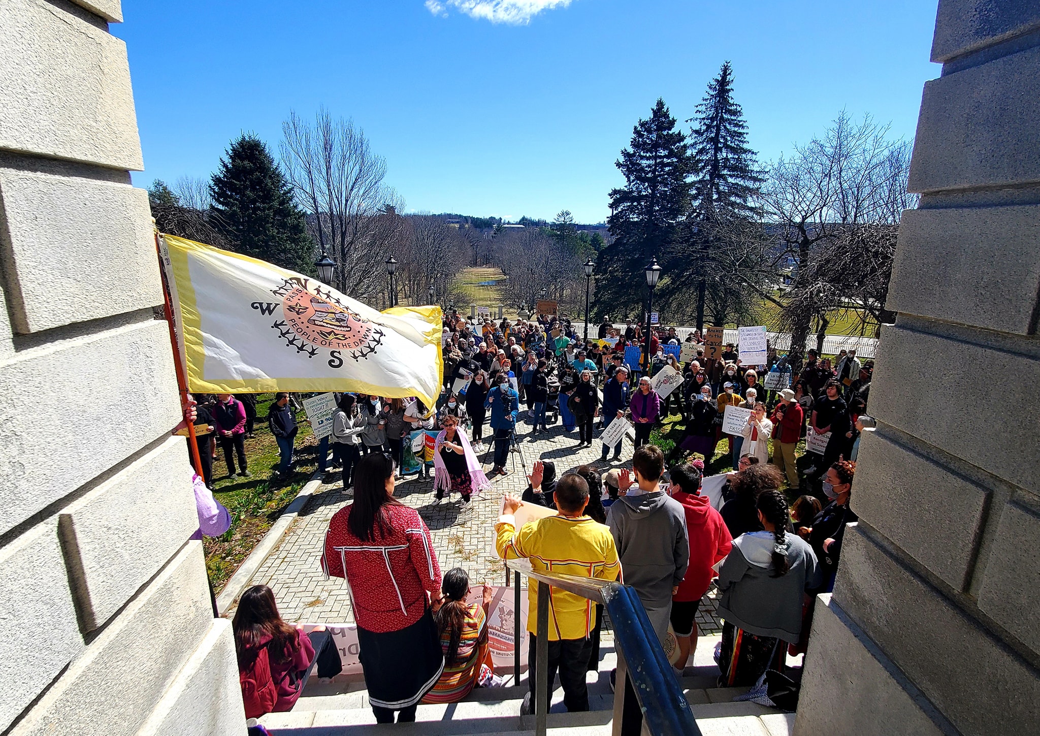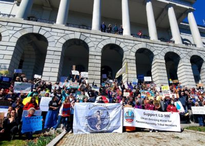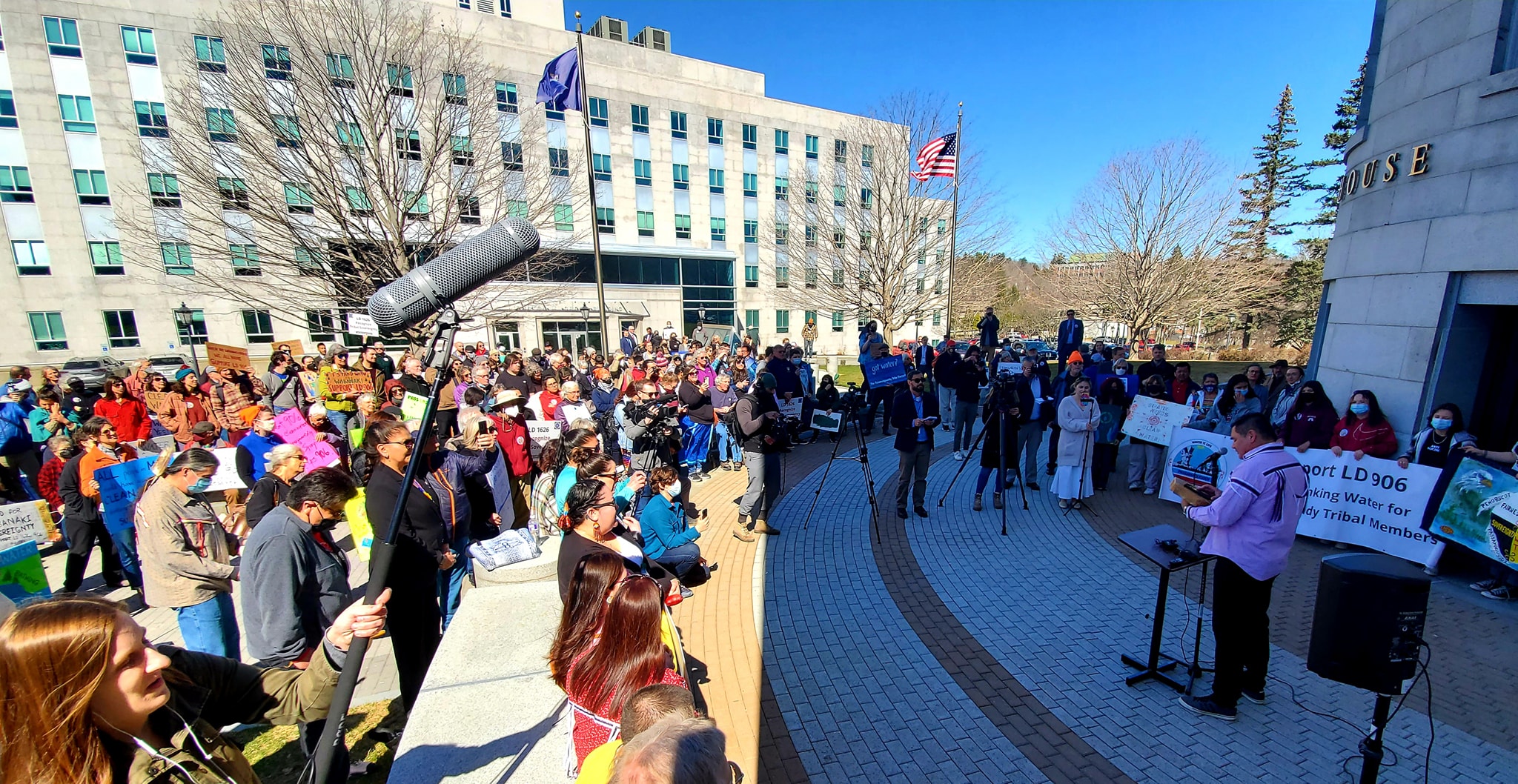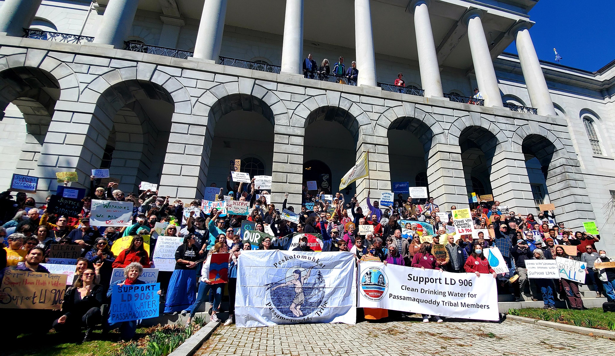Hundreds of Sipayik citizens and allies rallied at the Maine State House in support of LD 906 and clean drinking water for the Passmaquoddy Tribe at Sipayik.